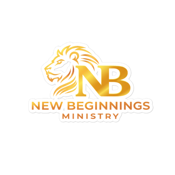 Durable kiss-cut sticker featuring the New Beginnings Ministry lion logo. Perfect for laptops, water bottles, notebooks, and more.